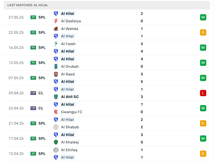 - Phong độ Al Hilal