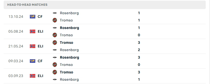 2 lần gặp mặt nhau gần nhất và 3/5 lần đón tiếp Tromso trên sân của Rosenborg khép lại 90 phút không quá 2 bàn thắng.