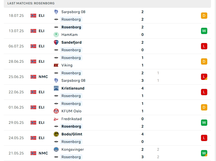 Rosenborg sau 16 trận đấu họ mang về 19 bàn thắng cùng với hàng thủ nhận 16 bàn thua, lối chơi của Rosenborg mùa giải năm nay chú trọng sự chắc chắn, 3/5 trận gần nhất của họ khép lại không quá 2 bàn thắng và 4/5 trận trên sân nhà vừa qua cũng có kết quả tương tự.