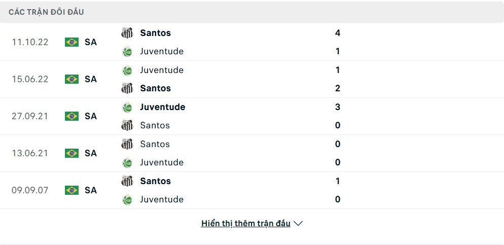 Trải qua 16 vòng đấu, Santos ghi 15 bàn và để thủng lưới 21 lần. Dù chưa thực sự bùng nổ, nhưng tại tổ ấm Vila Belmiro, họ tỏ ra ổn định hơn rất nhiều khi mới chỉ để lọt lưới 7 lần – con số không tệ với một đội bóng vừa chân ướt chân ráo trở lại đấu trường số 1 Brazil. Trước một đối thủ đang “hấp hối” như Juventude, khả năng giữ sạch lưới của Santos là hoàn toàn khả thi.