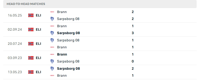 Những màn đụng độ giữa Sarpsborg và Brann thường diễn ra hấp dẫn với nhiều bàn thắng được tạo ra, ở 3/5 lần gặp mặt nhau gần nhất khép lại 90 phút từ 3 bàn trở lên và 2/3 lần đón tiếp Brann trên sân của Sarpsborg khép lại trên 3 bàn thắng.