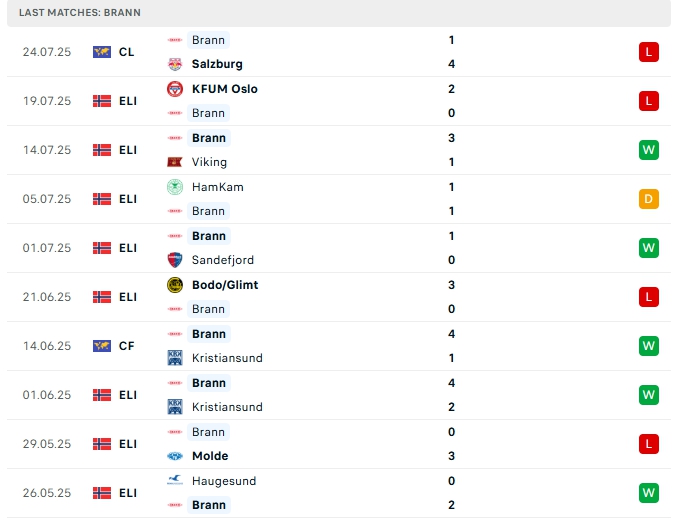 Brann sau 16 trận đấu họ mang về 27 bàn thắng cùng với hàng thủ nhận 24 bàn thua, Brann sở hữu lối chơi tấn công, dù vậy việc dâng cao khiến hàng thủ đối diện nhiều thách thức, 2/3 trận gần nhất của Brann vượt mốc trên 3 bàn thắng, 4/5 trận xa nhà vừa qua của Brann họ đều để đối thủ chọc thủng lưới.