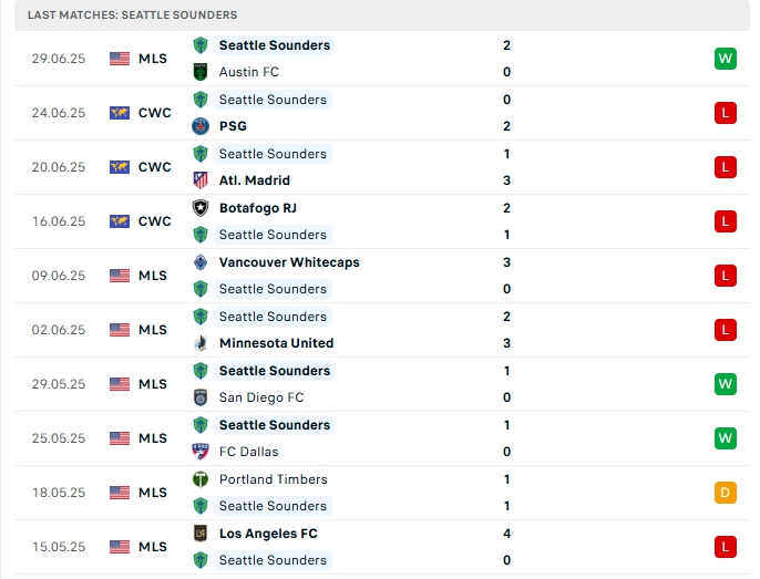 - Phong độ Seattle Sounders