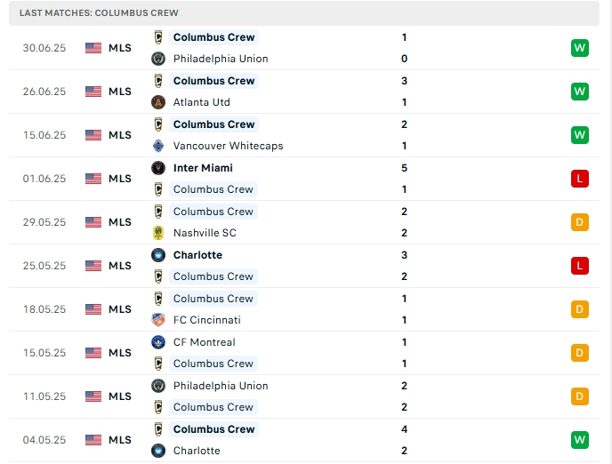 - Phong độ Columbus Crew
