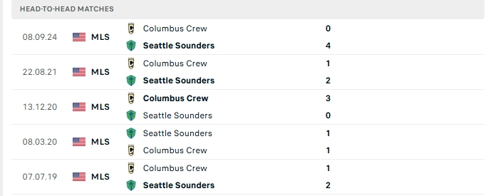 Lịch sử đối đầu của Seattle Sounders vs Columbus Crew