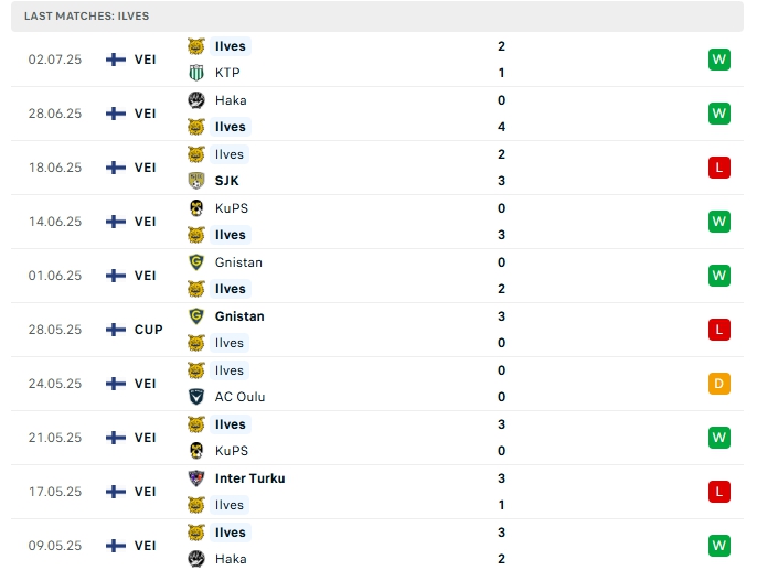 Ilves Tampere sau 14 trận đấu hàng công chơi tốt với 32 bàn thắng, cùng hàng thủ nhận 16 bàn thua, lối chơi của Ilves Tampere thiên về tấn công giúp họ đang bay cao trên BXH, ở 4/5 trận vừa qua của Ilves Tampere khép lại 90 phút từ 3 bàn trở lên và 4/5 trận xa nhà của họ cũng vượt mốc 3 bàn.
