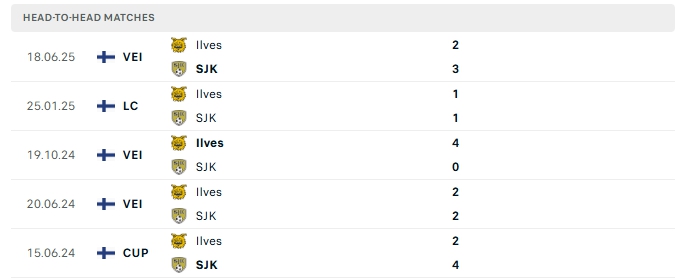 Lịch sử đối đầu của Seinajoen JK vs Ilves Tampere