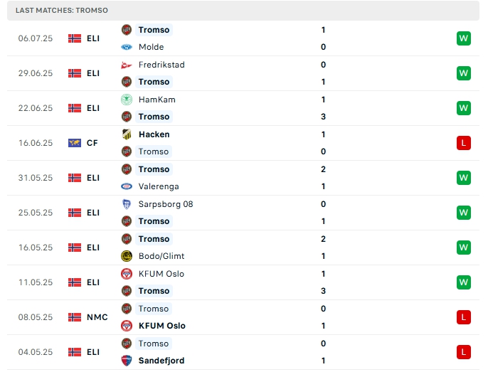Tromso sau 12 trận đấu họ mang về 21 bàn thắng cùng với hàng thủ nhận 15 bàn thua, Tromso chơi tốt ở hàng công, và khá chắc chắn nơi hàng thủ giúp họ đang có được kết quả tốt ở những vòng đấu vừa qua, 3/5 trận vừa qua của Tromso khép lại không quá 2 bàn thắng và 3/5 trận trên sân nhà cũng khép lại với kết quả tương tự.