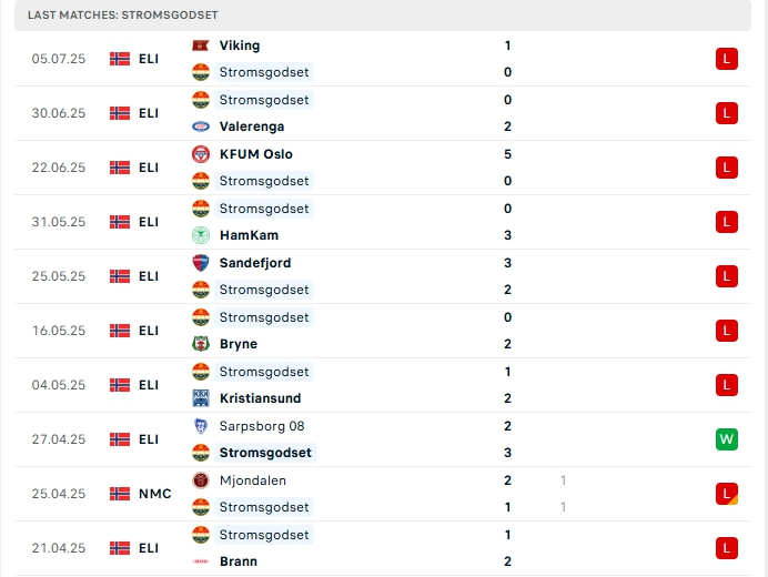 Stromsgodset sau 12 lượt trận họ mang về 2 chiến thắng, và nhận đến 10 thất bại, có được 6 điểm và đang xếp vị trí thứ 15 trên BXH, phong độ thời gian qua của Stromsgodset là cực kỳ tệ hại khi thua 7 trận liên tiếp gần nhất, trên sân nhà của mình họ cũng thua đến 6 trận và chưa có được chiến thắng nào.