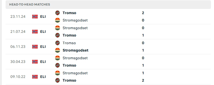 Những màn đụng độ giữa Stromsgodset và Tromso thường diễn ra với sự chặt chẻ và ít bàn thắng được tạo ra, 4/5 lần gặp nhau gần nhất và 4/5 lần đón tiếp Tromso trên sân của Stromsgodset khép lại không quá 2 bàn.