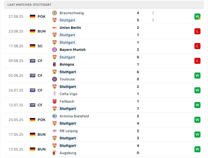 Stuttgart ở ngày ra quân họ nhận thất bại 1-2 trước Union Berlin, thất bại này khiến Stuttgart đang xếp vị trí thứ 13 trên BXH, phong độ thời gian qua của Stuttgart là không tốt khi họ chỉ thắng 2 và thua 3 ở 5 trận gần nhất, trên sân nhà của mình Stuttgart cũng toàn thua ở 2 trận vừa qua.