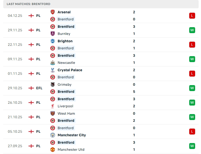 - Phong độ Brentford