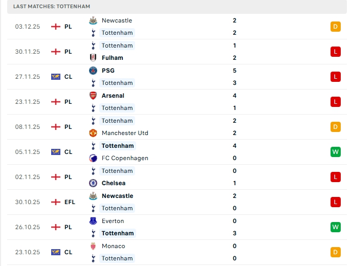 - Phong độ Tottenham