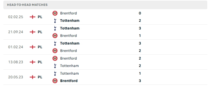 Màn đụng độ giữa Tottenham và Brentford thường diễn ra hấp dẫn với nhiều bàn thắng được tạo ra, cụ thể ở 4/5 lần gặp nhau gần nhất của hai đội và 3/5 lần đón tiếp Brentford trên sân của Tottenham khép lại trên 3 bàn.