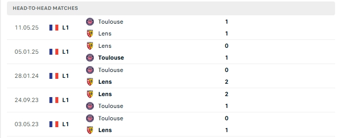 Những màn đụng độ giữa Toulouse và Lens thường diễn ra chặt chẻ với ít bàn thắng được tạo ra, cụ thể ở 4/5 lần gặp nhau gần nhất của hai đội và cả 5 lần đón tiếp Lens trên sân của Toulouse khép lại không quá 2 bàn thắng, hàng thủ cả hai đang chơi tốt.