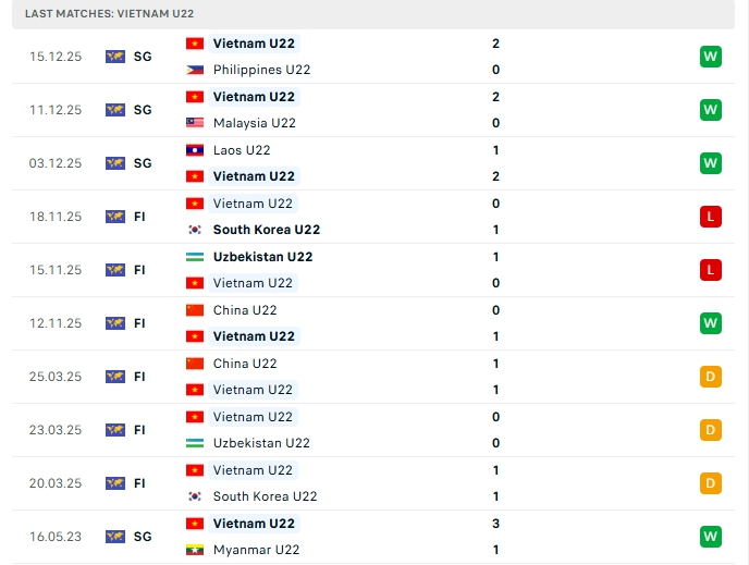 Phong độ gần đây U22 Thái Lan vs U22 Việt Nam