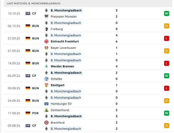 - Phong độ Monchengladbach