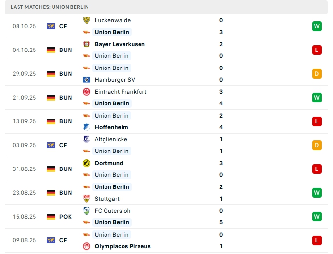 - Phong độ Union Berlin