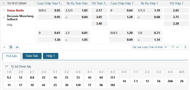 - Chọn Union Berlin -0 (H1)