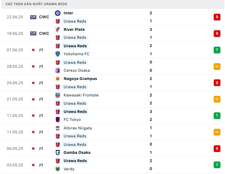 Urawa Red sau 2 lượt trận đại diện châu á đã thi đấu không thành công, hàng công chơi tốt khi mang về 2 bàn thắng cùng hàng thủ nhận 4 bàn thua, sau 2 thất bại liên tiếp thì Urawa Red đã chính thức bị loại và không còn cơ hội để đi tiếp. Tuy vậy những gì họ đã thể hiện là không thể xem thường bởi ở lượt trận thứ 2 họ đã dẫn trước Inter và chỉ chịu thua ở những phút bù giờ. Lượt đấu cuối cùng họ sẽ thi đấu với tâm lý thoải mái và Urawa Red sẽ ghi bàn ở trận đấu này.