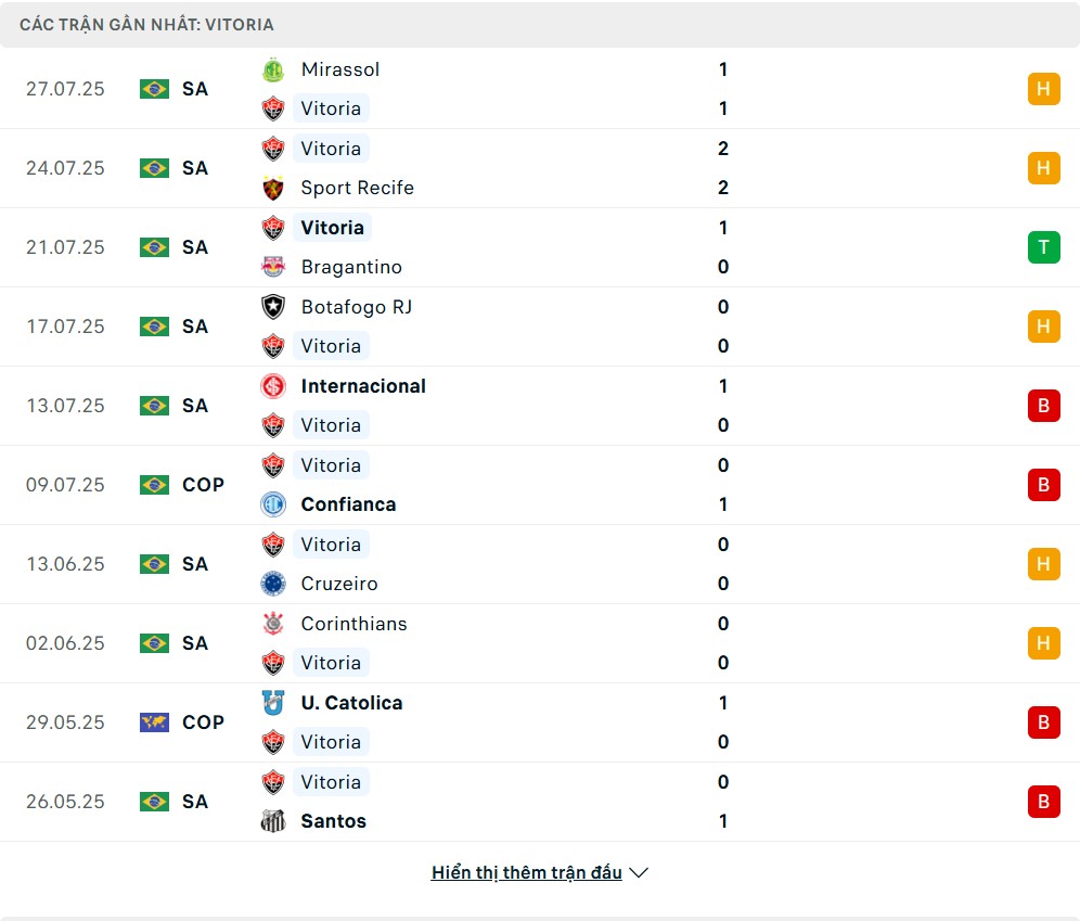 Sau 17 vòng đấu, Vitoria mới chỉ có 3 chiến thắng, hòa 8 và thua 6, với tổng cộng 17 điểm. Thành tích nghèo nàn này khiến họ chỉ đứng thứ 15 trên BXH, và khoảng cách với nhóm xuống hạng chỉ còn đúng 2 điểm mong manh. Phong độ hiện tại của đội bóng Bahia cũng rất bất ổn khi chỉ thắng duy nhất 1 trận trong 10 lần ra sân gần nhất trên mọi đấu trường – một chuỗi phong độ có thể gọi là “lụi tàn”.