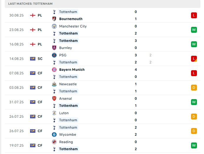 - Phong độ Tottenham
