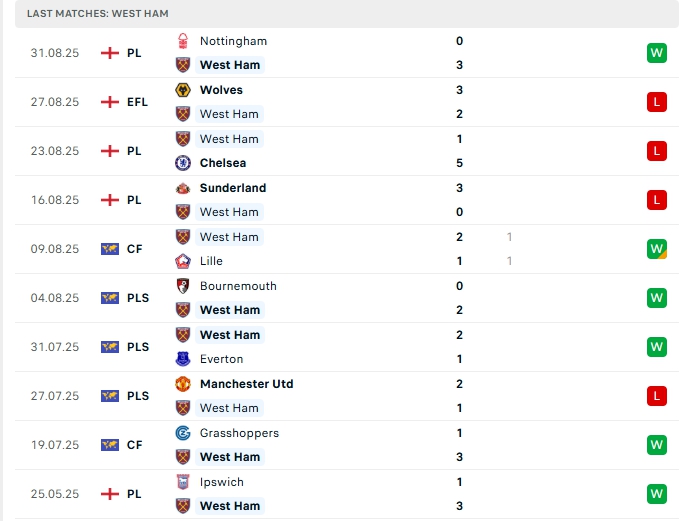 - Phong độ West Ham Utd