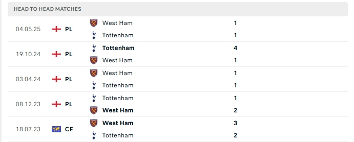 Phong độ gần đây West Ham Utd vs Tottenham